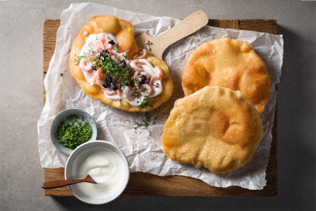Filip Poons små, sprø lángos passer utmerket som forrett. Velg topping etter smak og anledning!