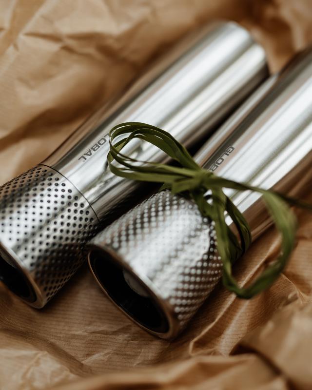 Globals krydderkverner er praktiske og stilige på kjøkkenbenken. Hvite prikker for salt og sorte for pepper. Gi krydderkverner som en leken gave til brudeparet – med en påminnelse om å fortsette å krydre hverdagen sammen.