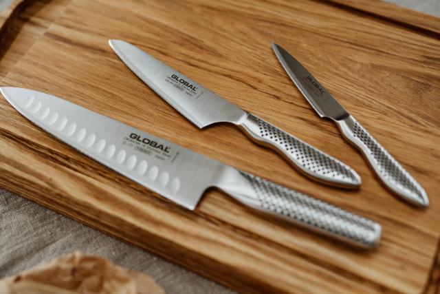 Globals knivsett i 3 deler er det perfekte startsettet for den som står overfor nye kapitler i livet – og på kjøkkenet. Med en olivenslipt kokkekniv, en fleksibel universalkniv og en smidig rotkniv dekker dette settet alt fra hverdagsmatlaging til større kulinariske eventyr. En ideell start på en ny knivsamling!