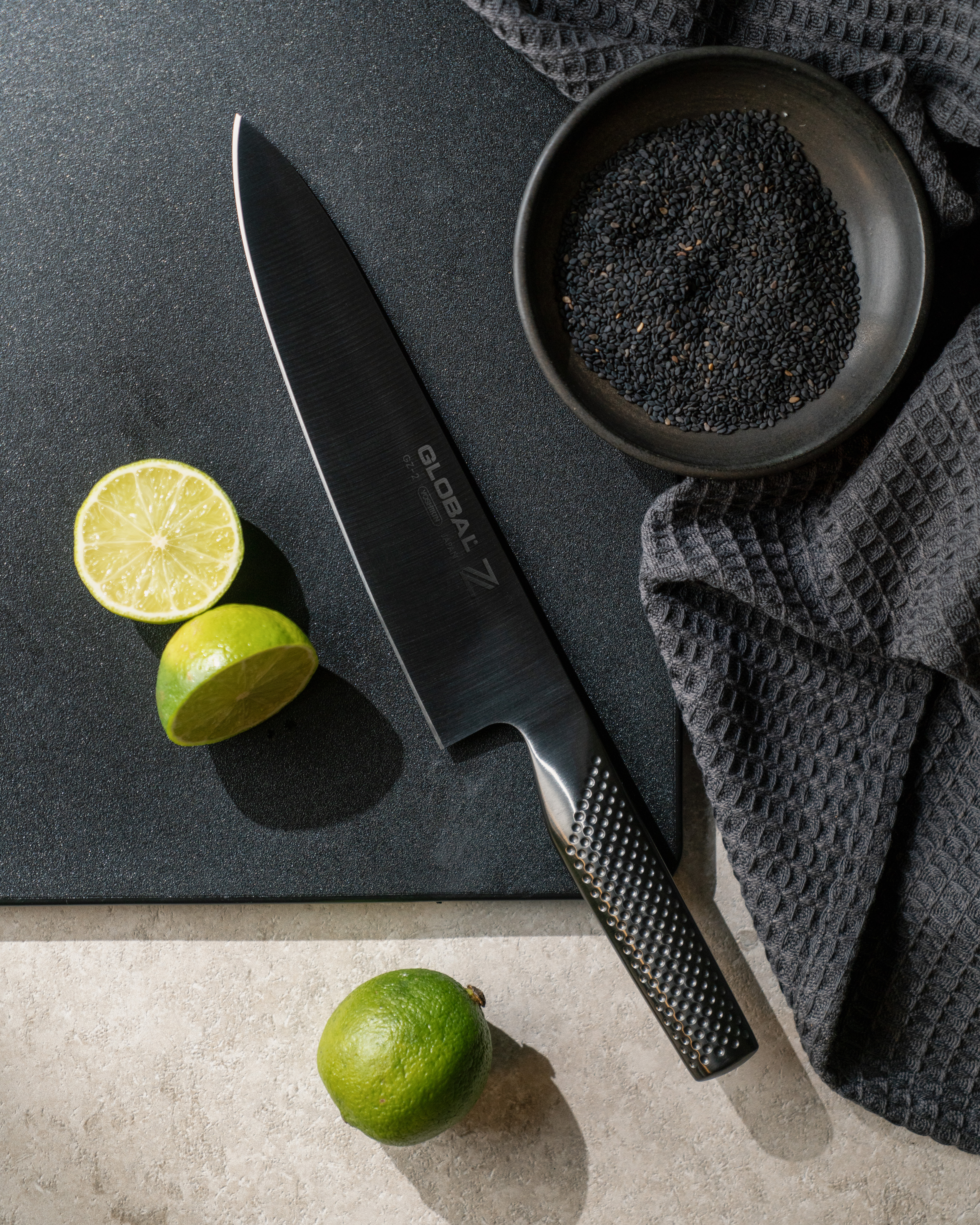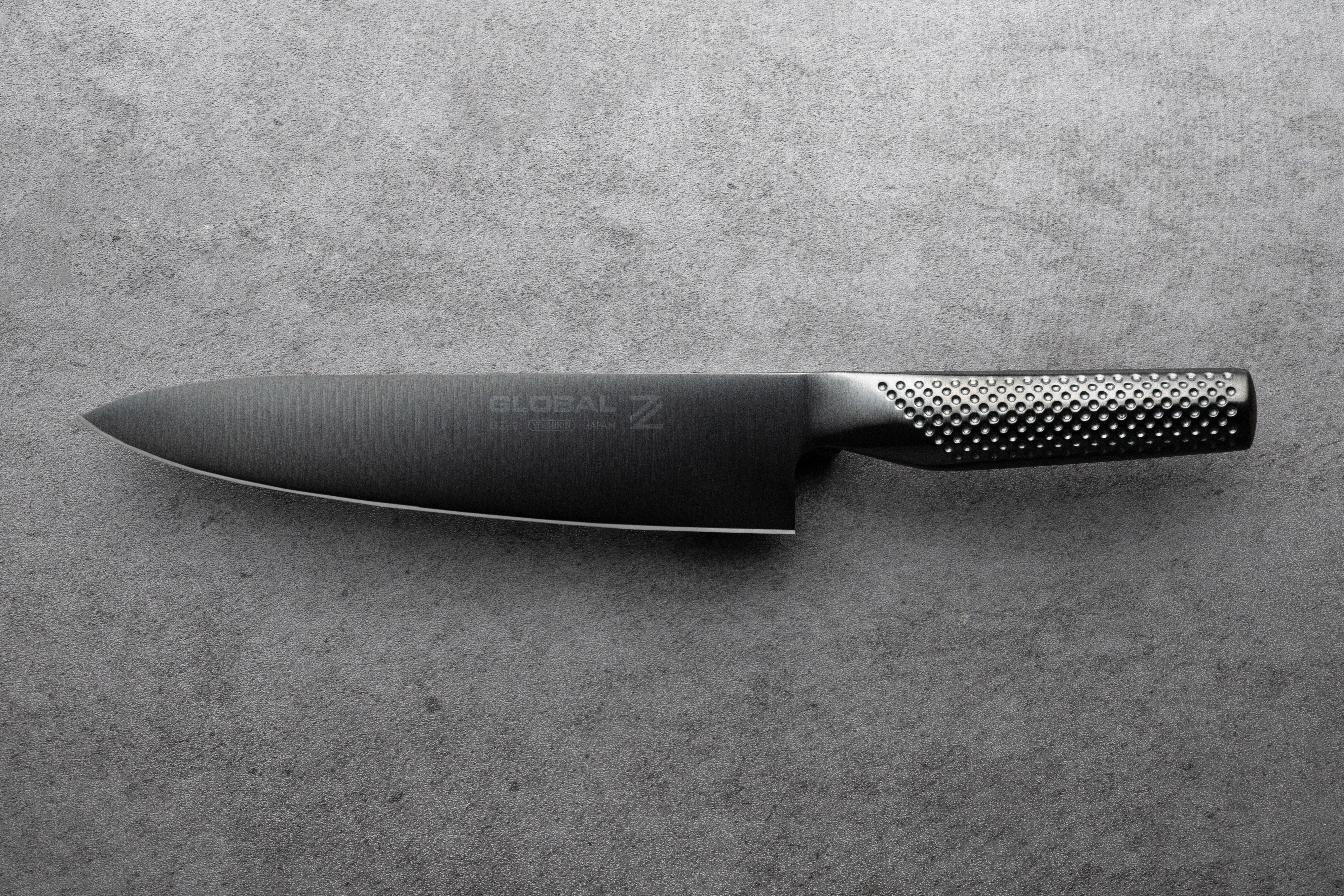 Kokkekniven fra Global Z er en videreutvikling av Globals klassiske kokkekniv G-2. Forskjellen er at Global Z har et svart DLC-belegg (Diamond-Like Carbon), som ikke bare er visuelt spennende, men også gir kniven en bedre ytelse. DLC-behandlingen øker hardheten i stålets overflate med over 140 prosent. Kokkekniven er allsidig og kan brukes til å skjære, hakke og kutte de fleste råvarer. Tyngden i knivbladet gjør det også lettere å jobbe med store kjøttstykker og rotgrønnsaker.