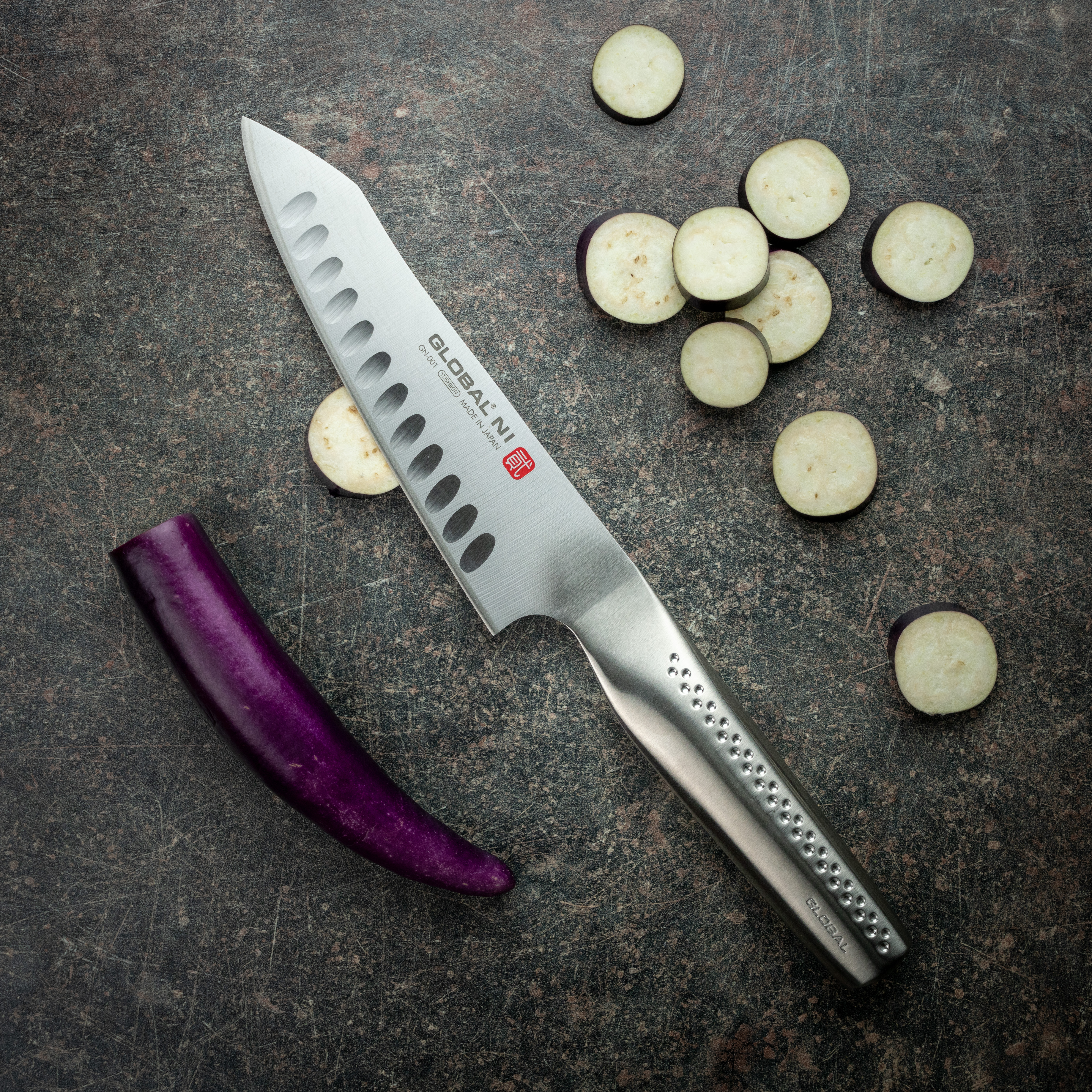 Hulslipt kokkekniv fra Globals serie Ni, 16 cm.